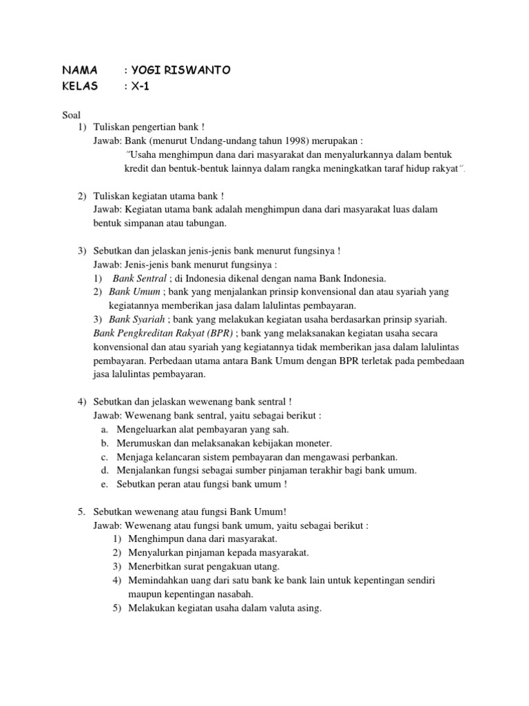 Kumpulan Soal dan Jawaban Manajemen Perbankan (Bagian I
